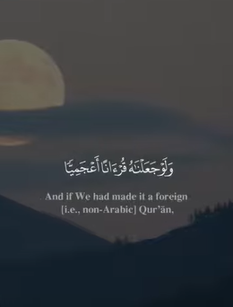 And if We had made it a foreign [i.e., non-Arabic] QurÕŒn, they would have said, "Why are its verses not explained in detail [in our language]? Is it a foreign [recitation] and an Arab [messenger]?" S...